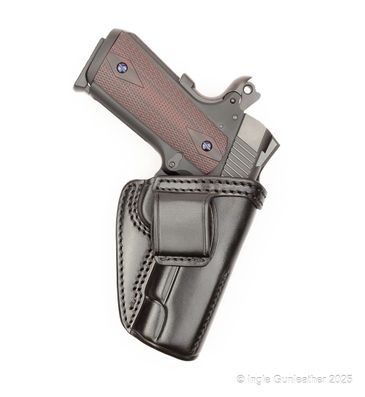 10. All ‘pancake-style’ holsters feature an arched design, unlike a traditional 50/50 style pancake holster which has equal-sized front and back panels. The arched design allows the holster to curve around the hip, resulting in increased comfort and less bulk for better concealability.